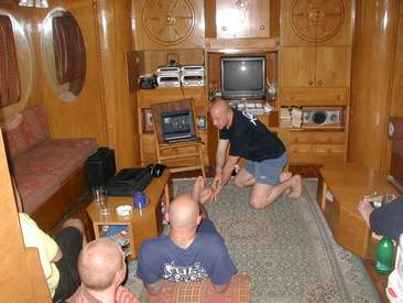 Wie immer hat jemand einen Laptop mit DVD-Player dabei, der natürlich zur Abendunterhaltung genutzt wird.