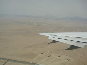 Ein letzer Blick aus dem Flugzeug auf die Wüstengegend von Hurghada, die so überhaupt nichts zu tun hat mit der Vielfant der Unterwasserwelt, die wie erlebt haben (die Unterwasser-Bilder kommen noch)